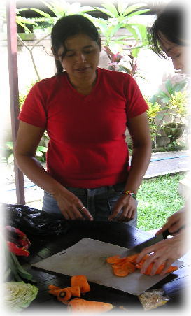 Ni Made Sarina 30歳(通称:ヌガ) 料理歴 15年 中学校を卒業してから、高校に通いながら おばさんのWarung(バリの一般的な食堂)を手伝って15年。 インドネシア料理は勿論のこと地元、バリ料理は彼女の自慢! そして、バリのお菓子もとても美味しく仕上げます。 15年続いたそのお店も今は、おばさんの引退と共に閉店。 。 今は、ここHOUSEのオリジナルグッズを創るBATIK職人として HOUSEで働いてくれています。 |