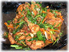 ナシ・ゴレン、ミ・ゴレン、チャプチャイは材料がほぼ共通していて野菜をたっぷり入れる。 先生はおもむろに床にまな板を置いてドカドカと豪快に野菜を切っていくのでびっくり。お〜。さすがはインドネシアと妙に納得する。 スパイスペーストを作るのに日本であればまな板で刻むかフードプロセッサーでブイ〜ンと済ませるであろうところ、 バトゥ・バソという石のすり鉢でゴリゴリとするのがなんとも味があっていい。 |