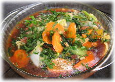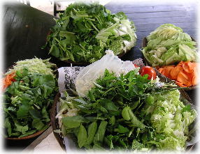 その日の朝、近くの市場で買ってきた 新鮮な野菜の数々 |