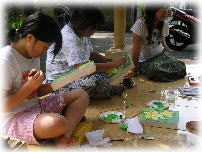 結局時間内に仕上がりそうになく、延長で先生に来てもらったり 帰国後に最後の仕上げをして、なんとか1枚描き上げることができました。 Rindu Houseでは、絵の技法を教えてもらった他にも、ユダさんYukiさんに連れられ 農場へ行ったり、友人の結婚式や、なぜかサーカスを観たり、お坊さんにお清めを してもらったりと、他ではできない体験をさせてもらいました。 せっかく習得したプンゴセカンスタイル、複雑なプロセスを忘れないうちに たくさん描いてモノにしていきたいと思います。 | |